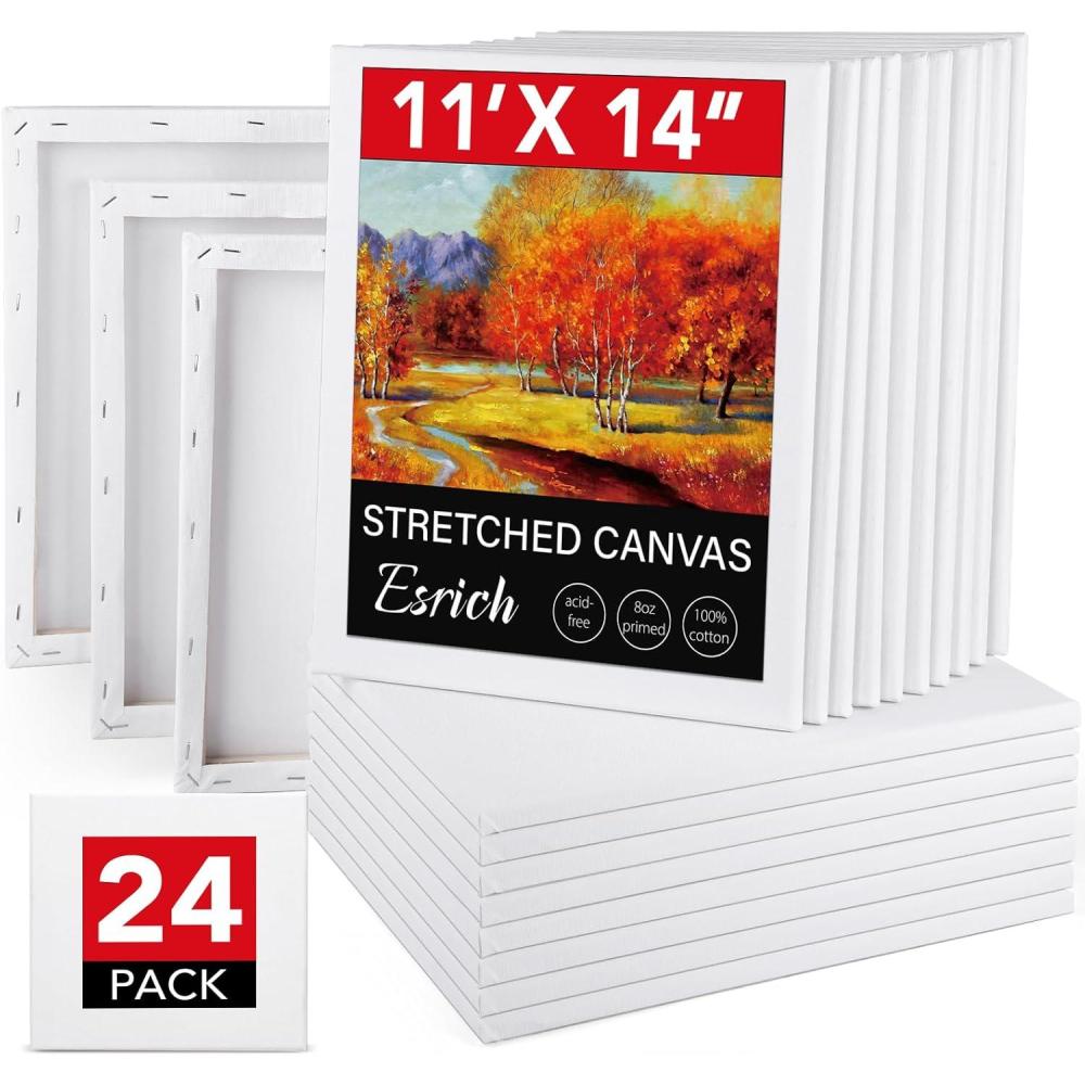 14 Packs Stretched Canvases for Painting, Multi Pack 11×14, 9.44×12, 8×10, 5×7, 4×4, Round Canvas with 8×8,10×10(2 of Each), Blank Primed Canvas, for Oil Paint, Acrylic Paint, for Beginners, Artists.(24 Packs-1Size( 11*14in))