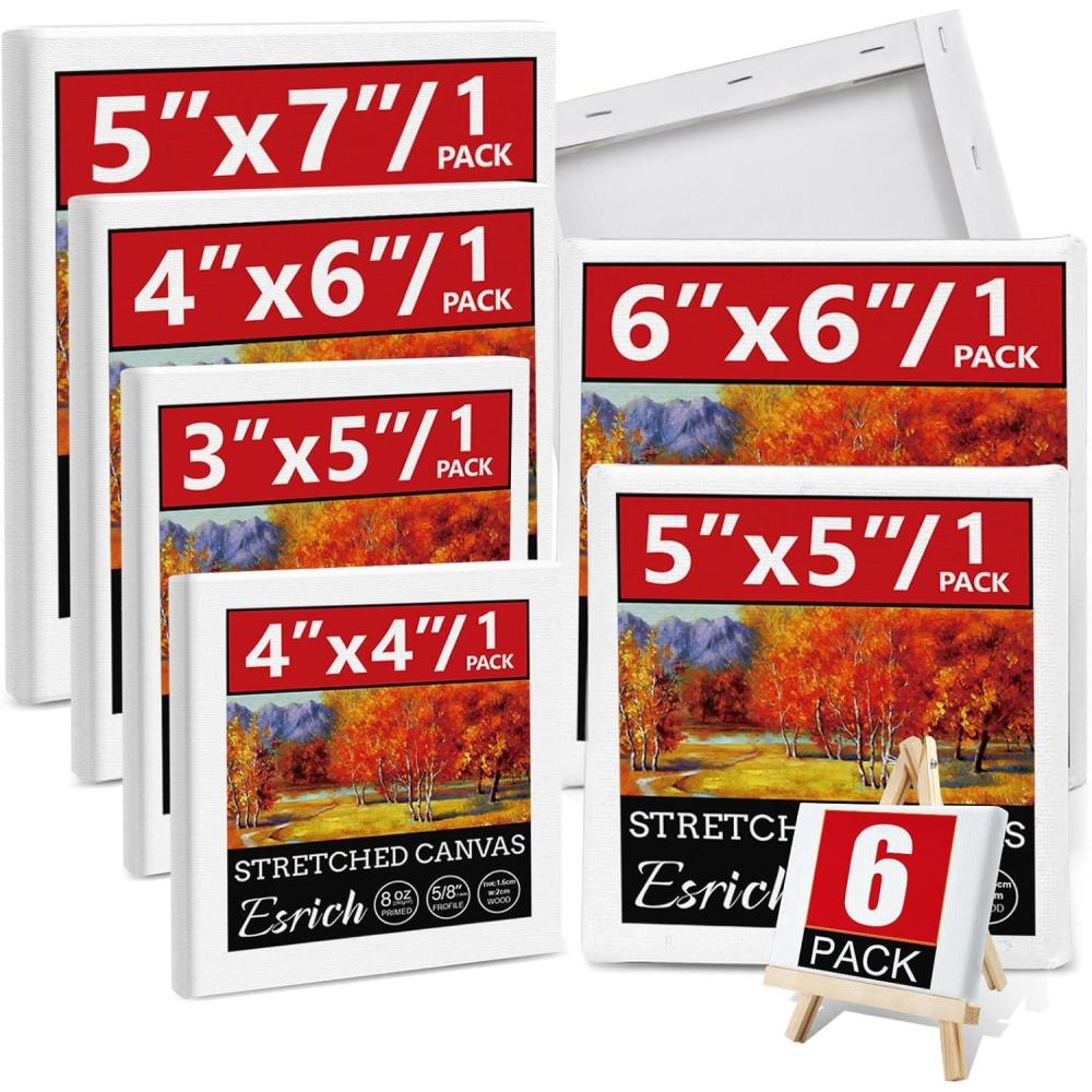 3 Pack Canvases for Painting with Multi Pack 11x14, 5x7, 8x10, Painting Canvas for Oil & Acrylic Paint(6 Packs - 6Sizes(1 of each))