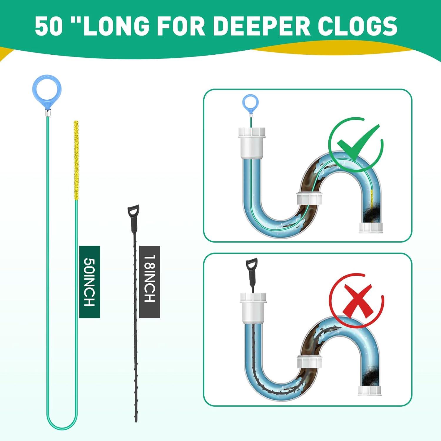 [High quality and flexible drain snake]:Drain snake hair drain clog remover inside steel wire external nylon material,can be bent into any shape to adapt to the sewer, so that hair drain clog remover can easily pass through the L/P/U/S pipe, not easy to break or damage the pipe or pollute the groundwater,completely and effectively dredge in the drainage system.