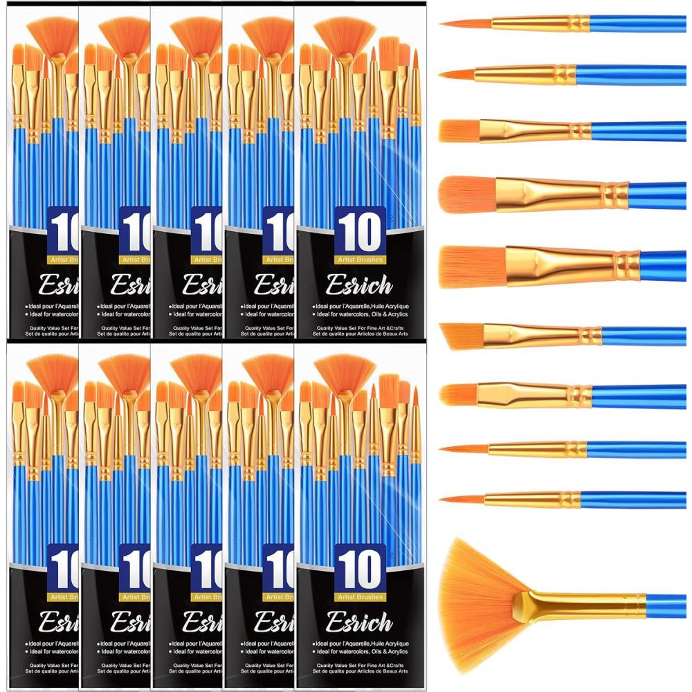 ESRICH 10PCS Paint Brushes,Paint Brush for Acrylic Painting,Acrylic Paint Brush Set for Oil Watercolor,Body Face Rock Canvas, Small Paint Brushes for Kids Adult Drawing(100p)