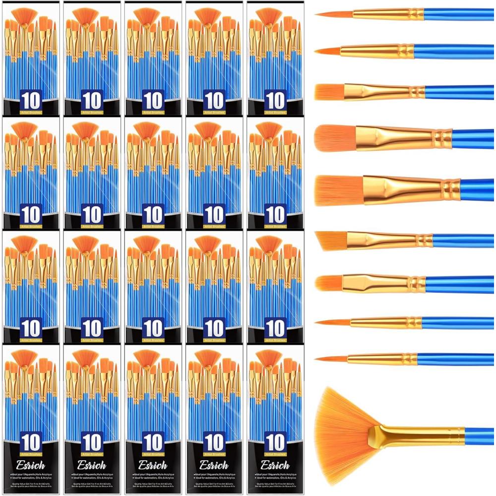ESRICH 10PCS Paint Brushes,Paint Brush for Acrylic Painting,Acrylic Paint Brush Set for Oil Watercolor,Body Face Rock Canvas, Small Paint Brushes for Kids Adult Drawing(200p)