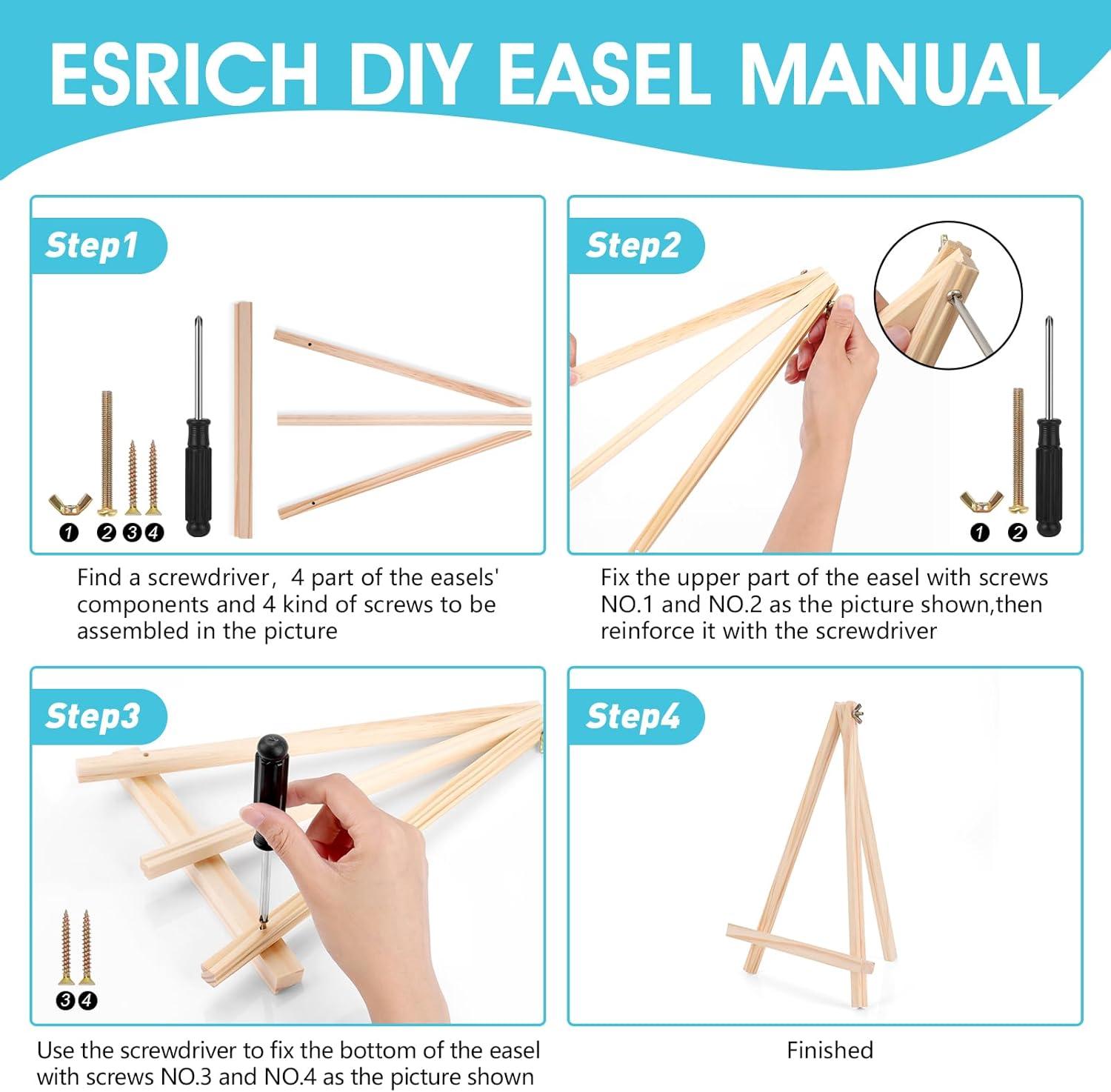 【MINI EASEL SIZE】:We include 4 easels and their assembly parts, one installation manual, and one screwdriver,easels 30 cm (11.8 inches) high, 20 cm wide (7.87 inches)
