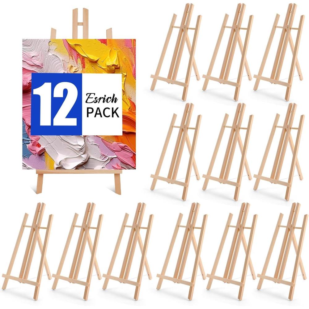 ESRICH 2 Pack 11.8″ Wood Easels,Tabletop Easel for Painting,Painting Party, Displaying Canvases, Kids Student Table School Desktop, Portable Canvas Photo Picture Sign Holder(16″-6P)