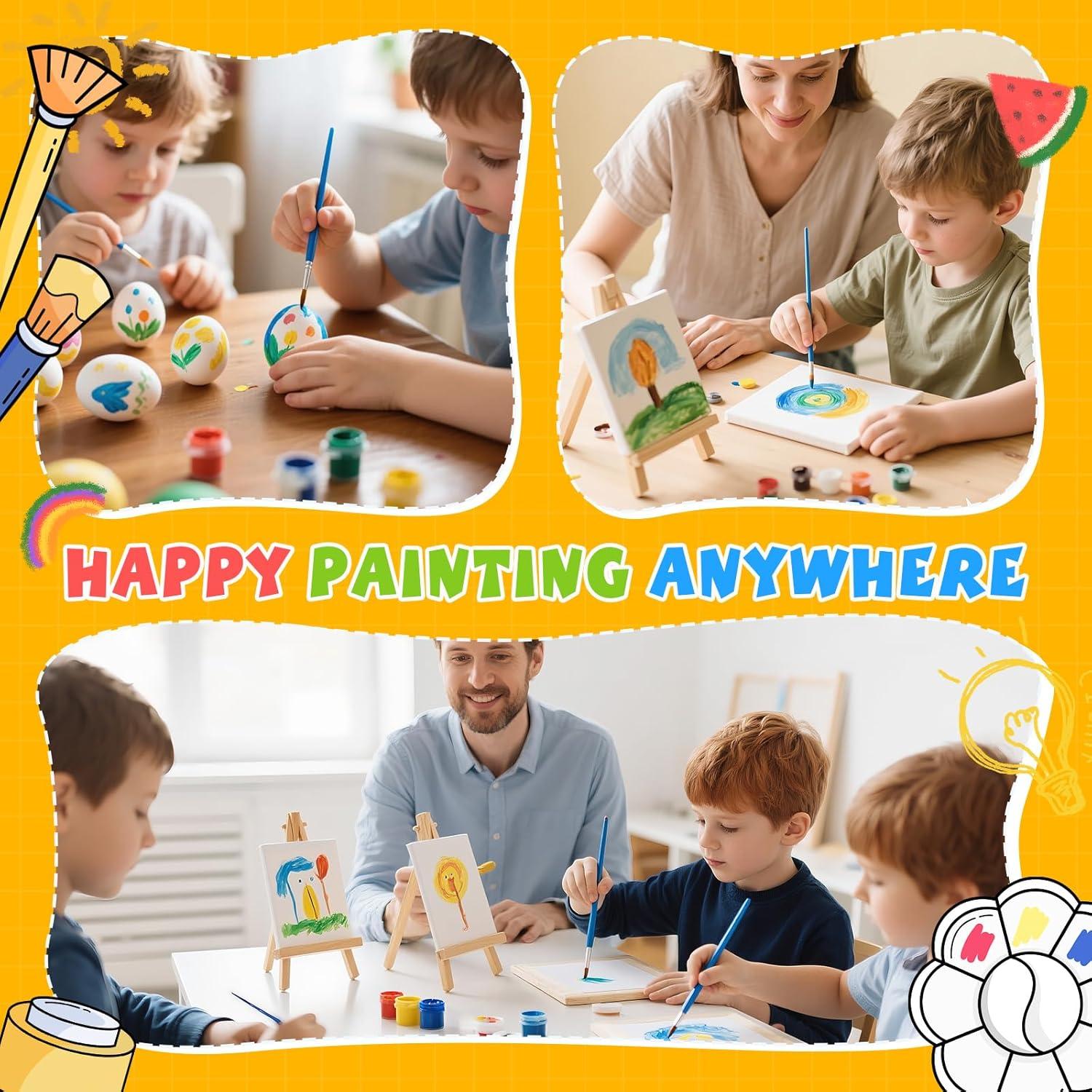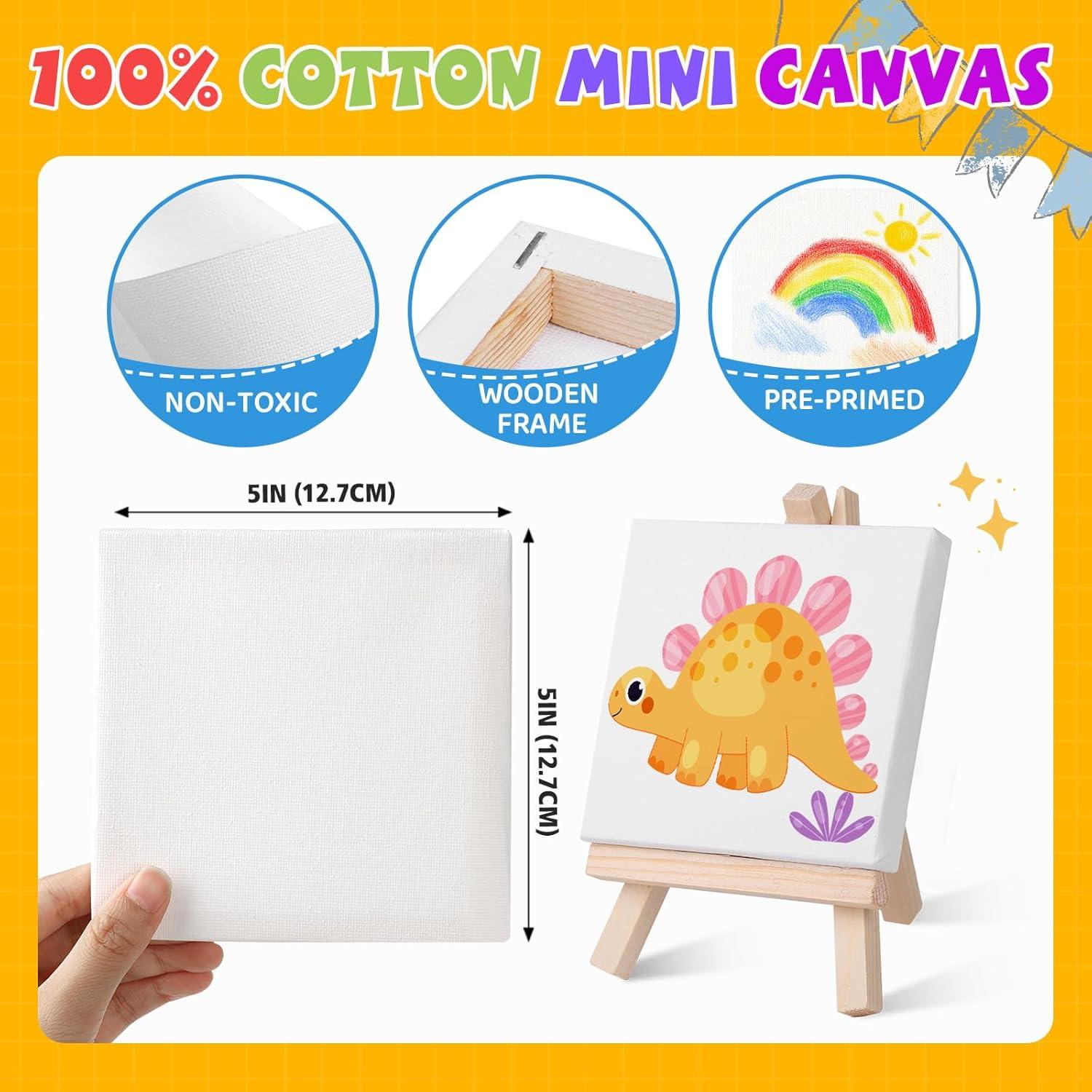 【 Mini Easel with Canva】: The 20 set mini acrylic paint canvas set provide 4 x 4 inch stretched canvas with 6 inch mini wood easel. Kids can use these art mini canvas show their creations anywhere. The mini canvas for painting are safe and non-toxic, making them perfect for kids to use. These easels are small and sturdy, and can also be used to hold photos, phones and display kid's masterpieces.