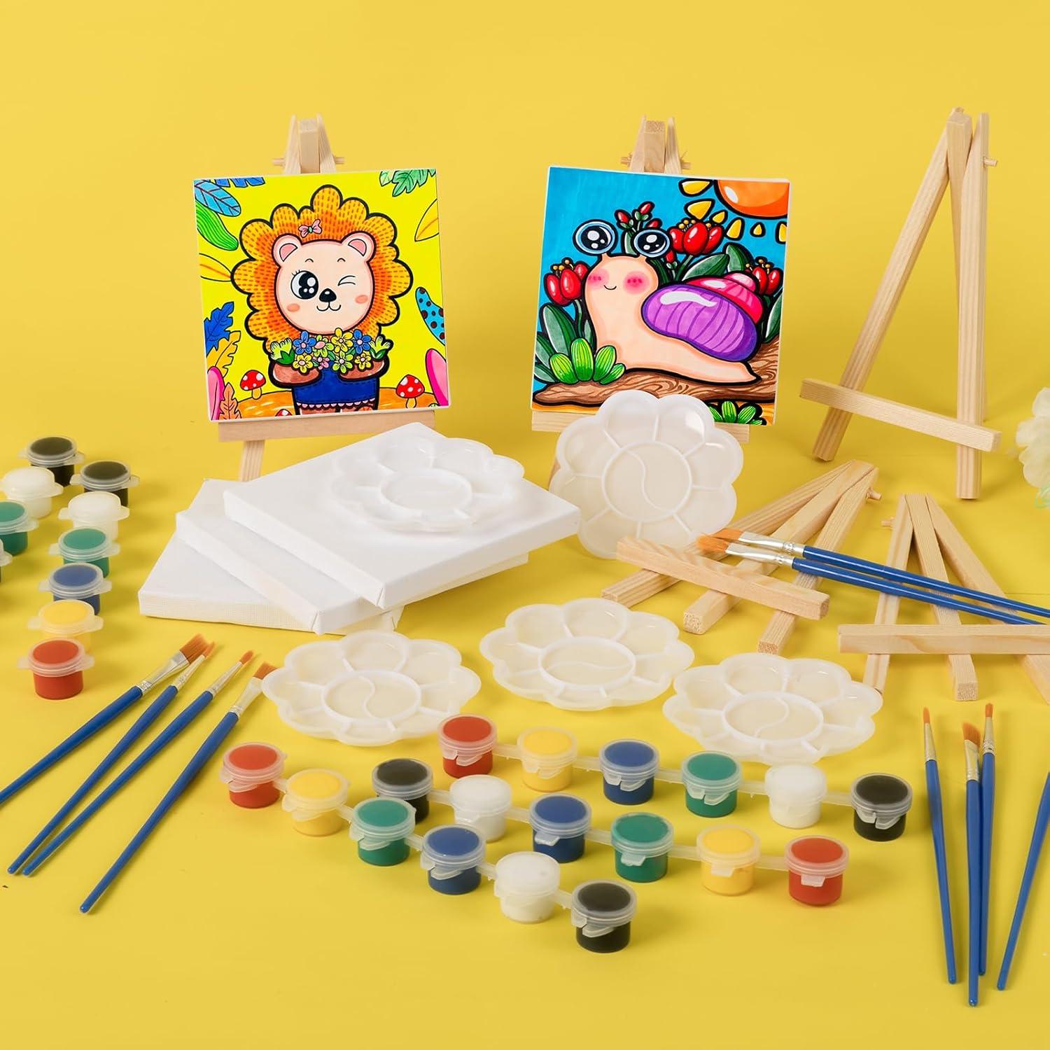 【 Mini Easel with Canva】: The 20 set mini acrylic paint canvas set provide 4 x 4 inch stretched canvas with 6 inch mini wood easel. Kids can use these art mini canvas show their creations anywhere. The mini canvas for painting are safe and non-toxic, making them perfect for kids to use. These easels are small and sturdy, and can also be used to hold photos, phones and display kid's masterpieces.