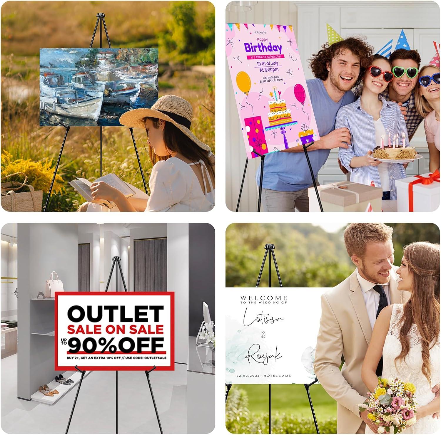 【Easy Install】: Easel stand is foldable, no complicated installation is required, it can be used when opened.for lightweight posters or signage. (Only 63-inch high easel * 8 storage bag * 8, does not include the sign board.)