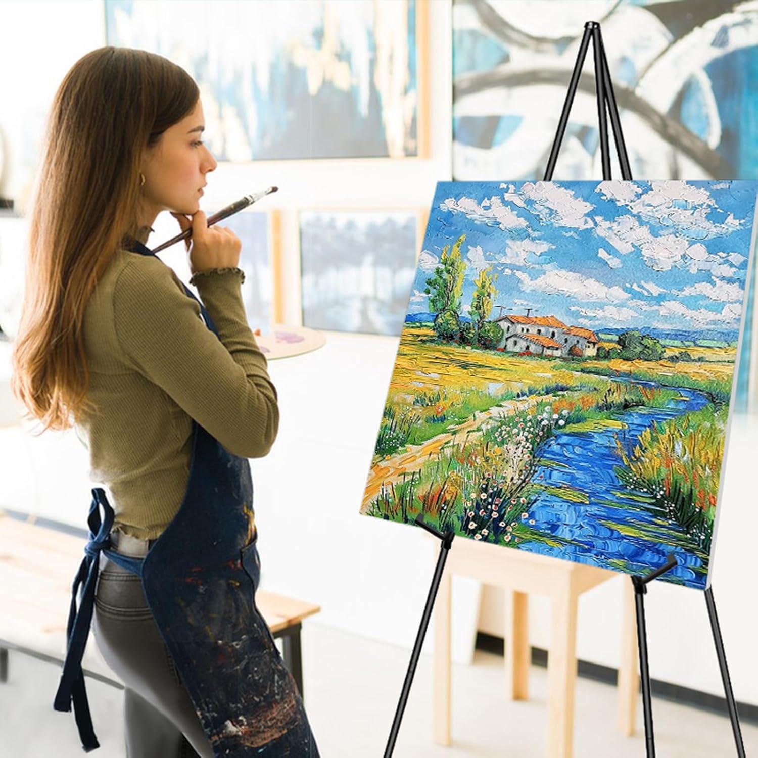 【Important TIP】: The Easel is a collapsible lightweight easel that weighs 2 pounds and stands 63in tall, portable and easy to set up for foam boards and lightweight signs weighing less than 5 pounds, not suitable for outdoor use in windy weather.Under the condition of no deformation, pull the three support feet outward to the farthest, which will be more stable.