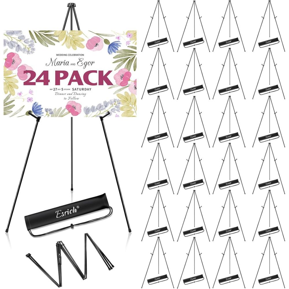 ESRICH 8 Pack Easel Stand for Sign, 63″ Easels for Display, Lightweight Metal Easels for Signs Wedding Logos,Arts, Painting,Adjustable Easel Stand with Storage Bag(24P)