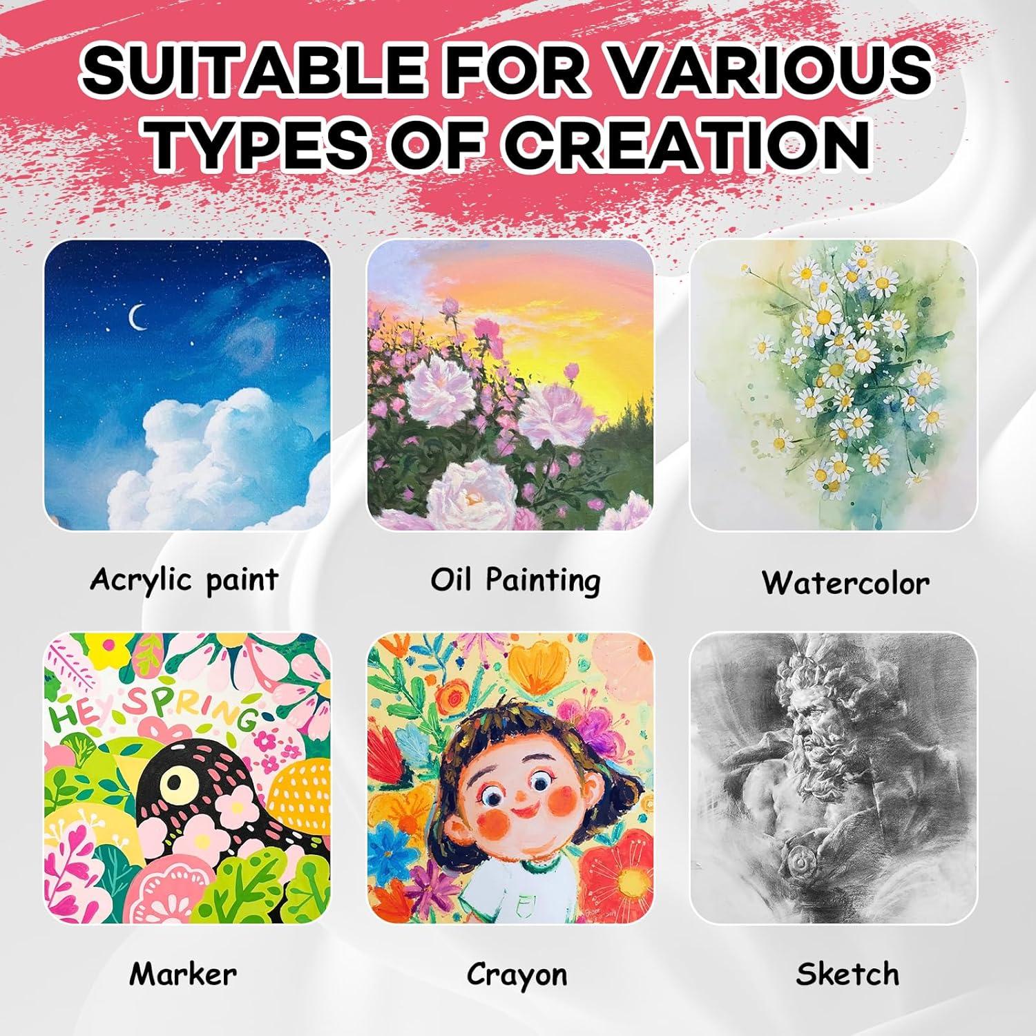 【Widely Used】Watercolor canvases for painting suitable for oil painting,watercolors,acrylic paintings,tempera paintings,pouring,Gouache and Tempera,etc.. Canvas bulk are also suitable for various occasions such as teaching, gatherings, home decorations, birthday decorations, etc.