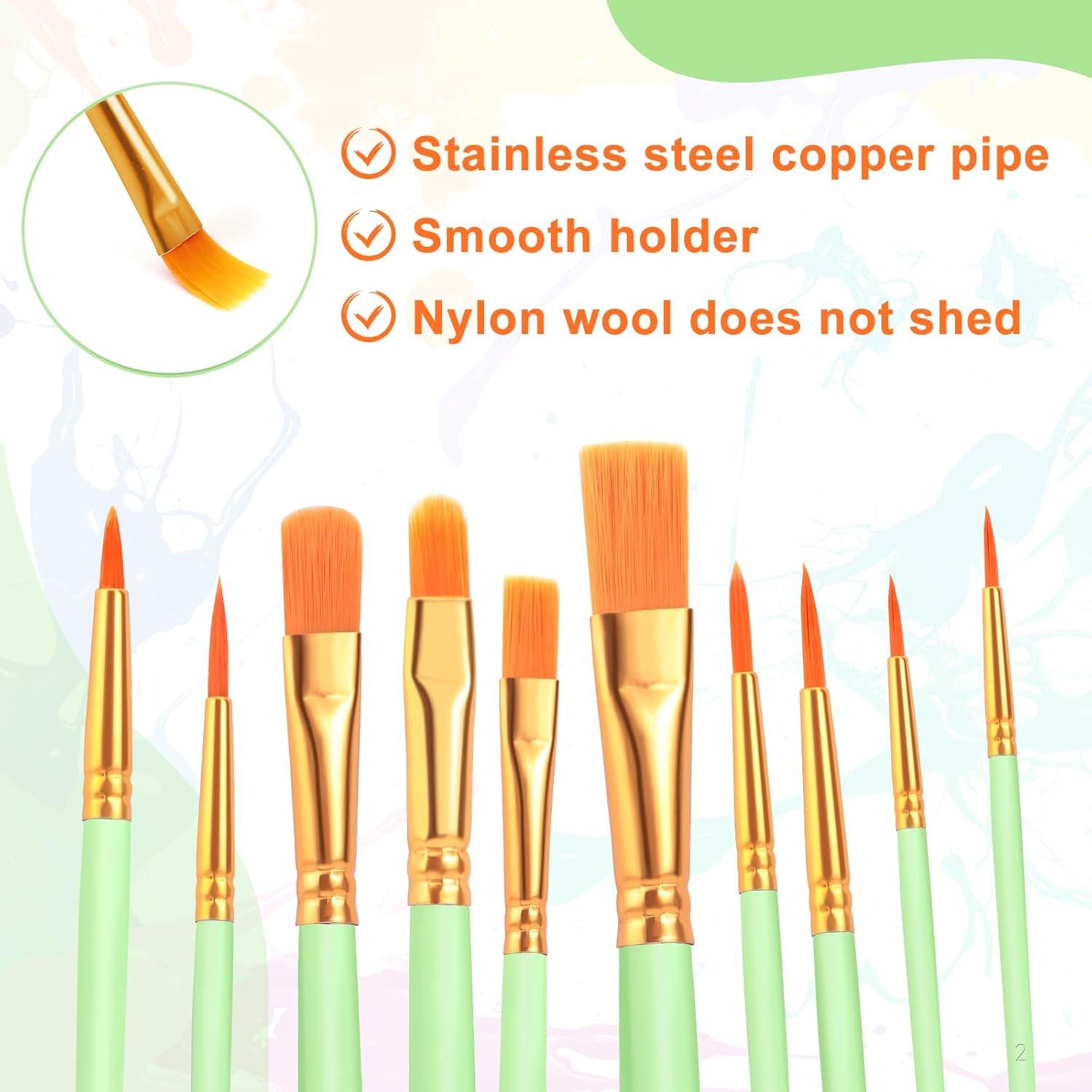 【High Quality Process】: Our brushes for painting is designed with anti falling bristles, anti-rust nickel ferrule and solid wood handle. You can use the nylon brushes to focus on the painting and always be creative.