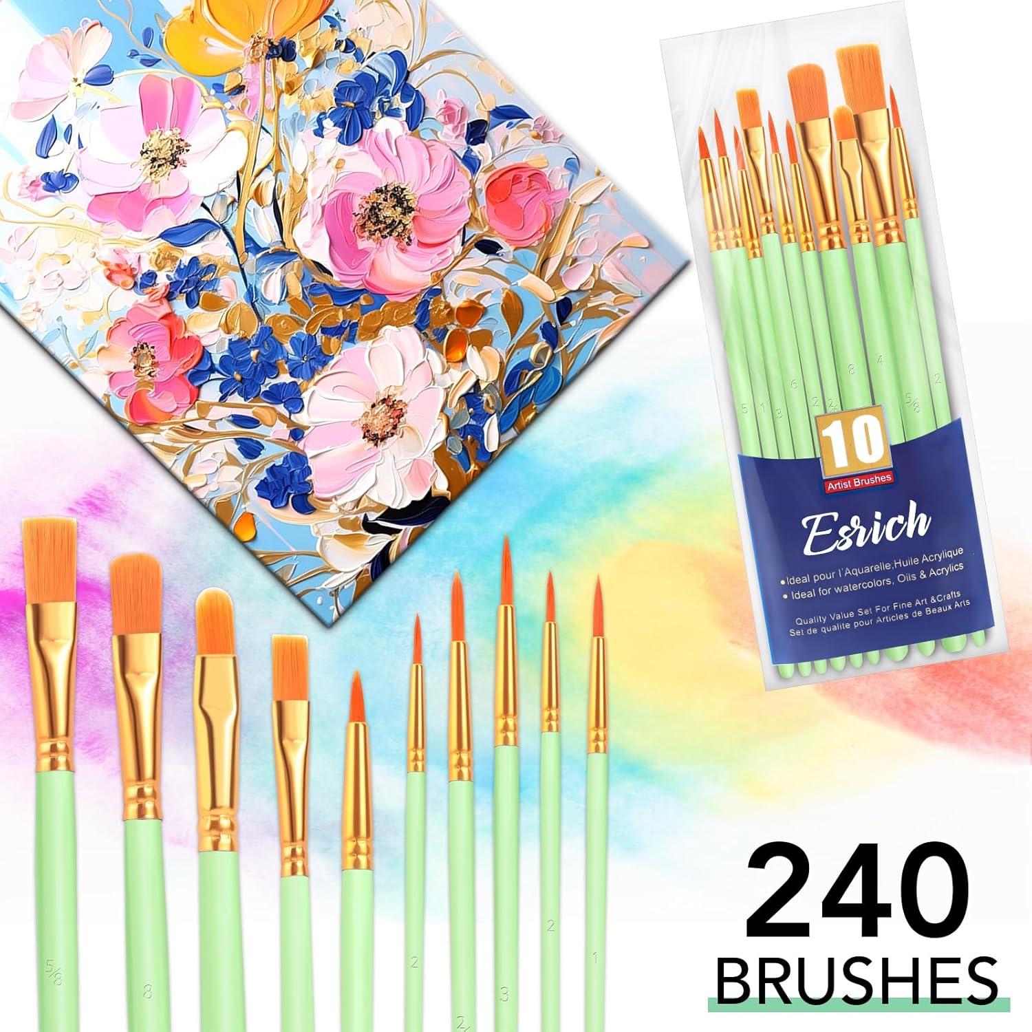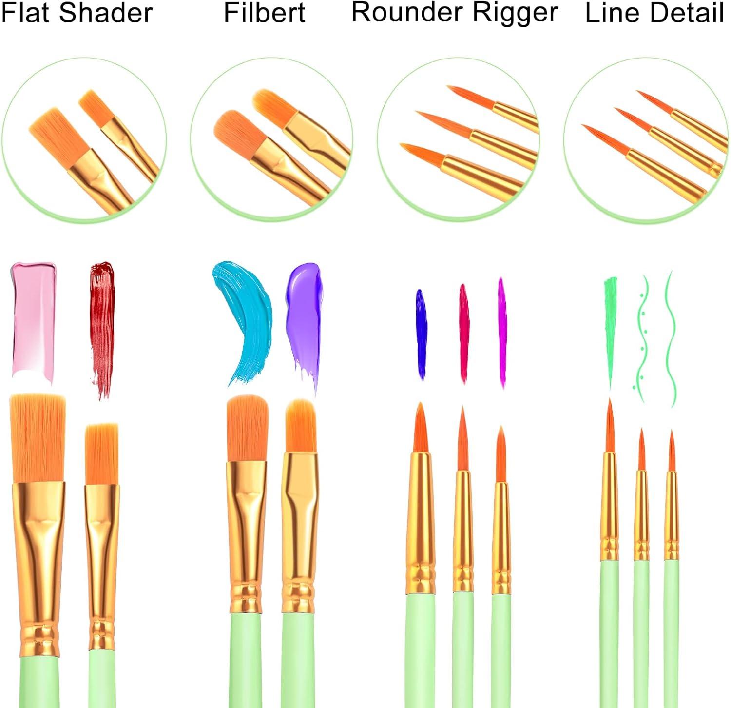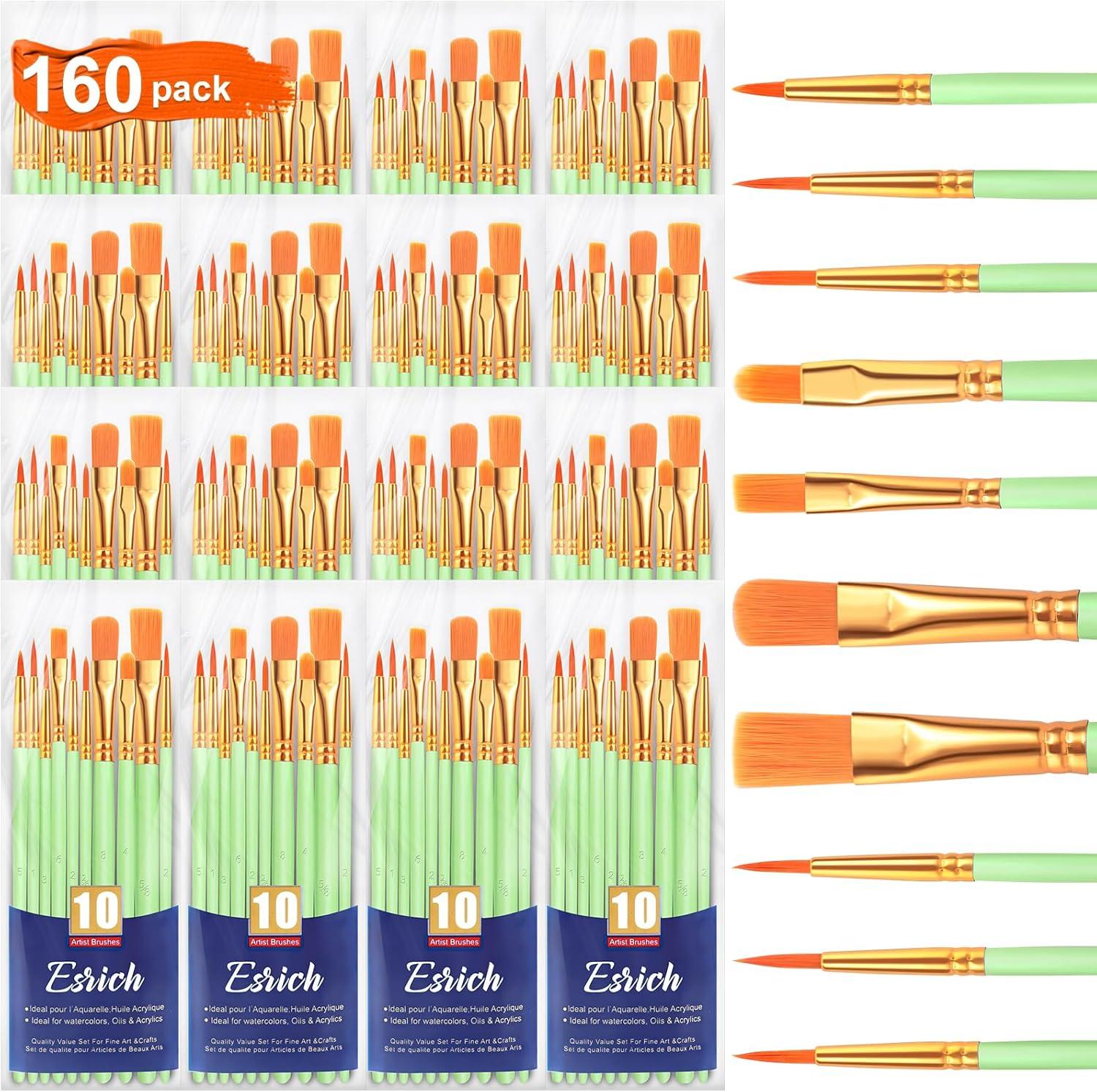 ESRICH Acrylic Paint Brushes Set, 16 Packs /160 Pcs, Nylon Brush Head, Suitable for Acrylic, Oil, Watercolor,Rock Body Face Nail Art,Perfect Suit of Art Painting, Best Gift for Kids Adult Drawing(Green)