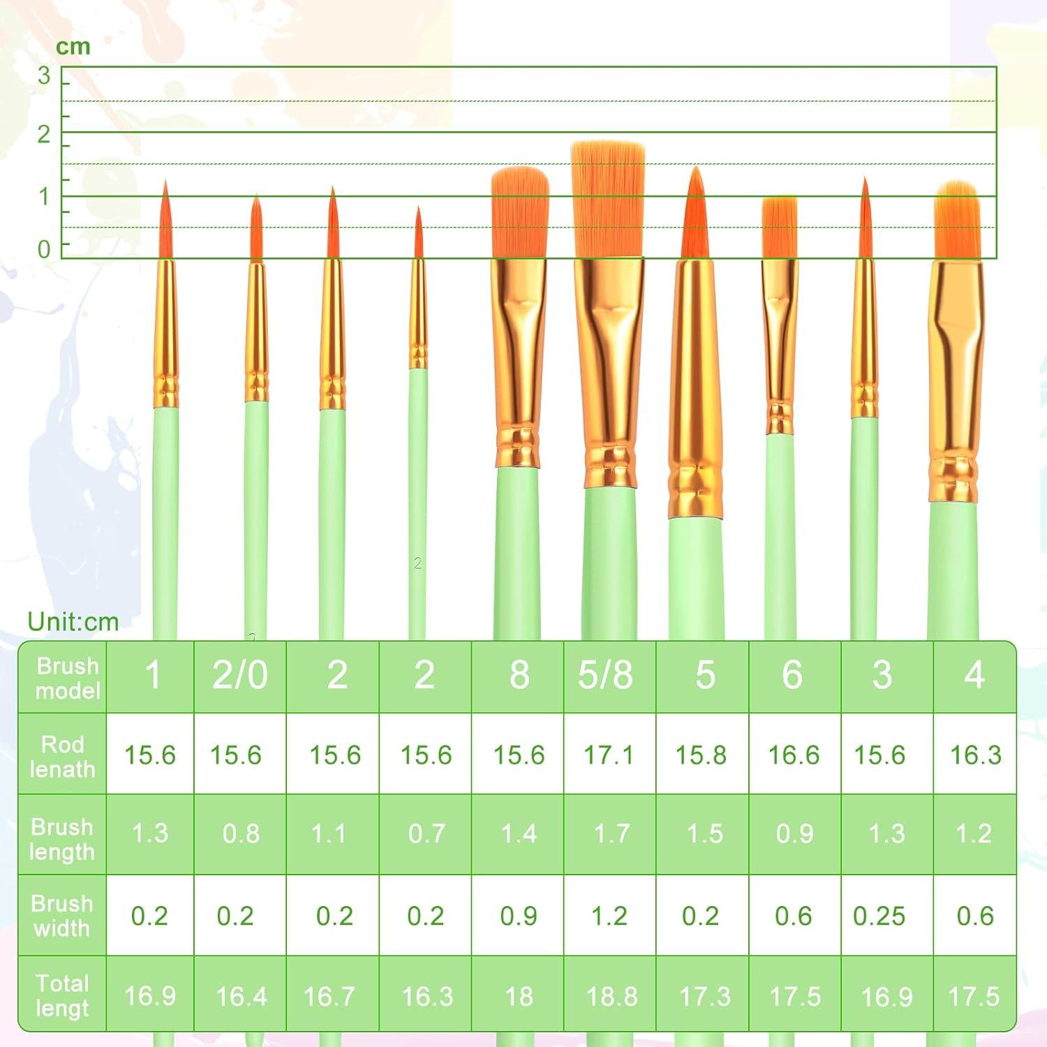 【All Sizes of Paint Brushes】: The 16 Packs/160 Pcs 10 sizes of multi-functional brushes have various shapes, making the mixing color easier, which is very suitable for artists, students, teenagers, children and painters at all levels. Wonderful gift ideas for friends and family who like painting!