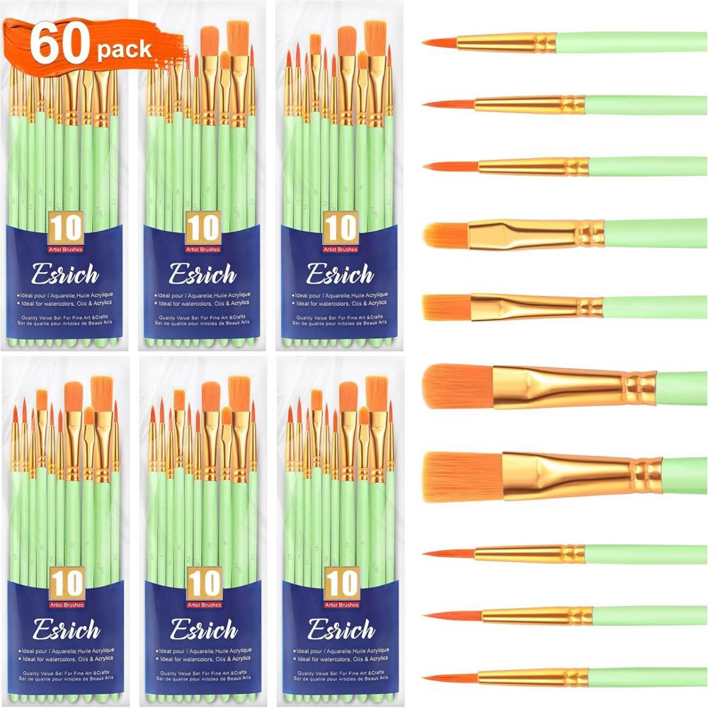 imageESRICH Acrylic Paint Brushes Set 16 Packs 160 Pcs Nylon Brush Head Suitable for Acrylic Oil WatercolorRock Body Face Nail ArtPerfect Suit of Art Painting Best Gift for Kids Adult DrawingGreen