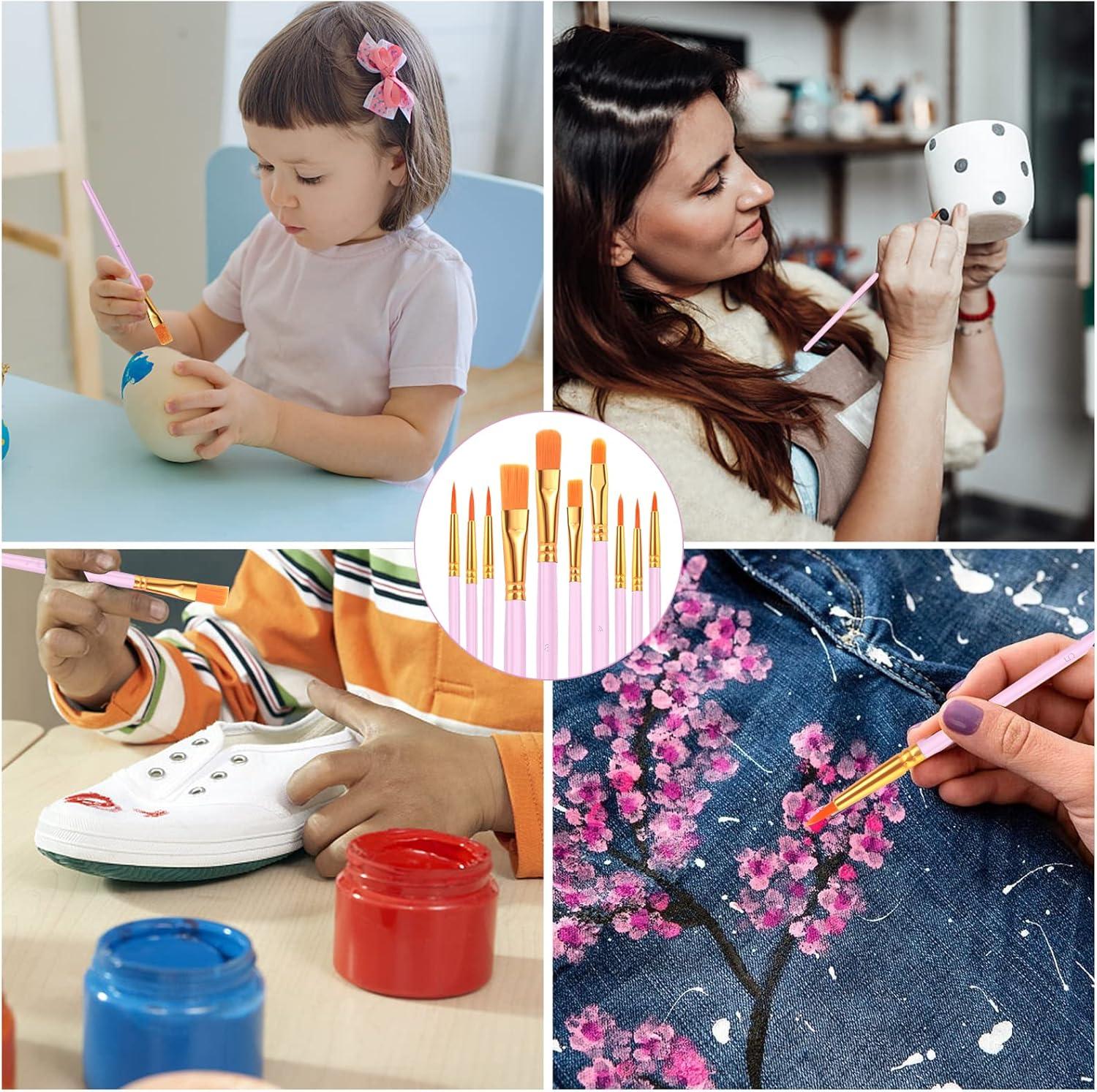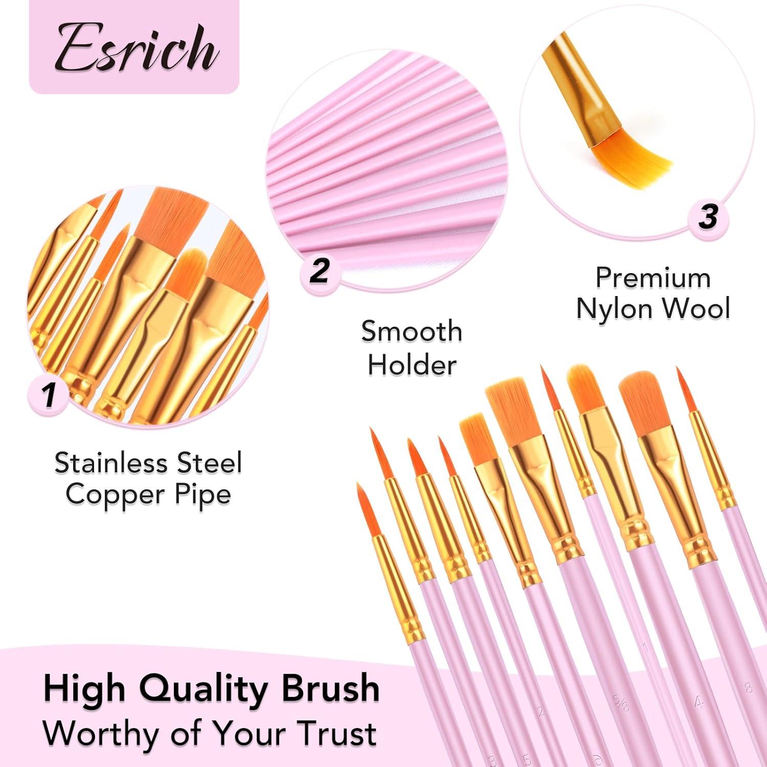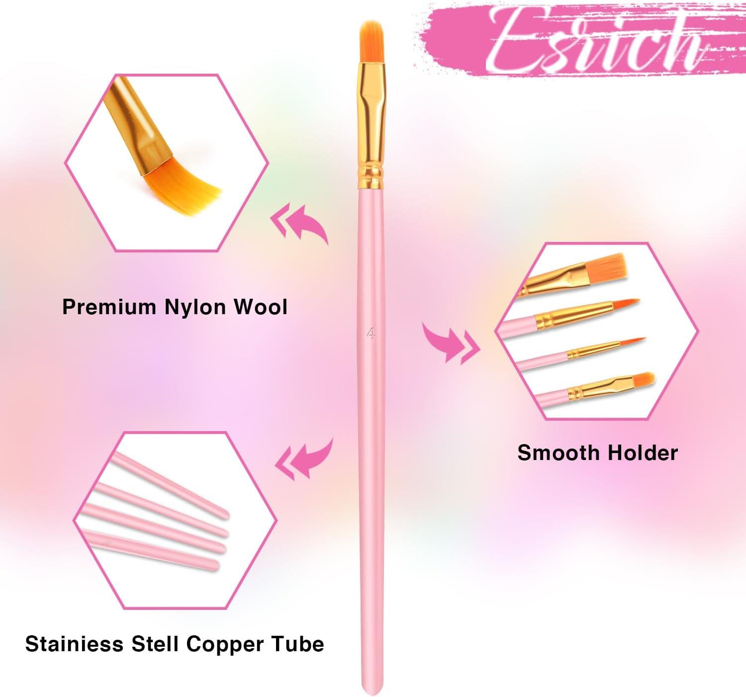 ESRICH Acrylic Paint Brushes Set,8Packs /80 Pcs Nylon Paintbrushes Head, Suitable for Acrylic Oil Watercolor Rock Body Face Nail Art Perfect Suit of Art Painting, Best Gift for Kids Adult Drawing(Pink)