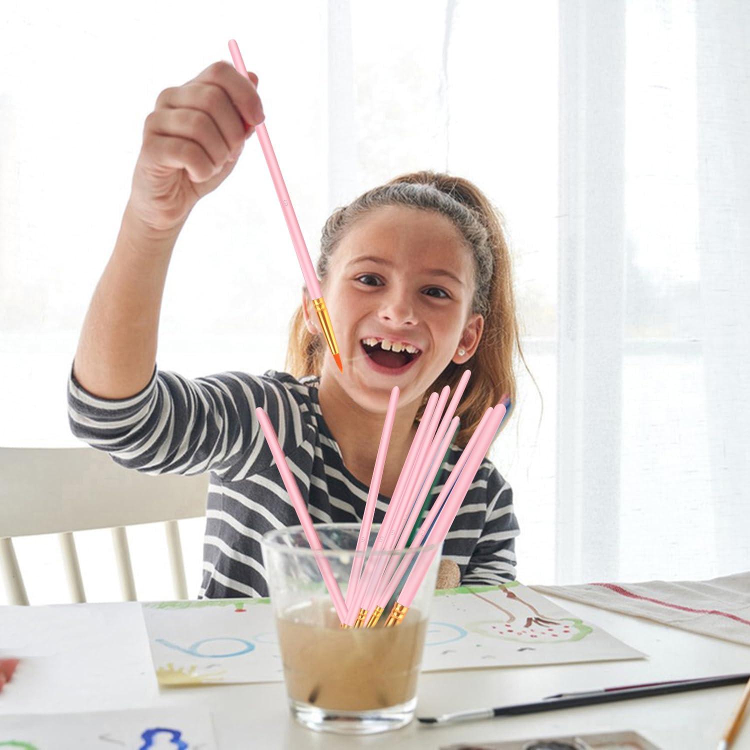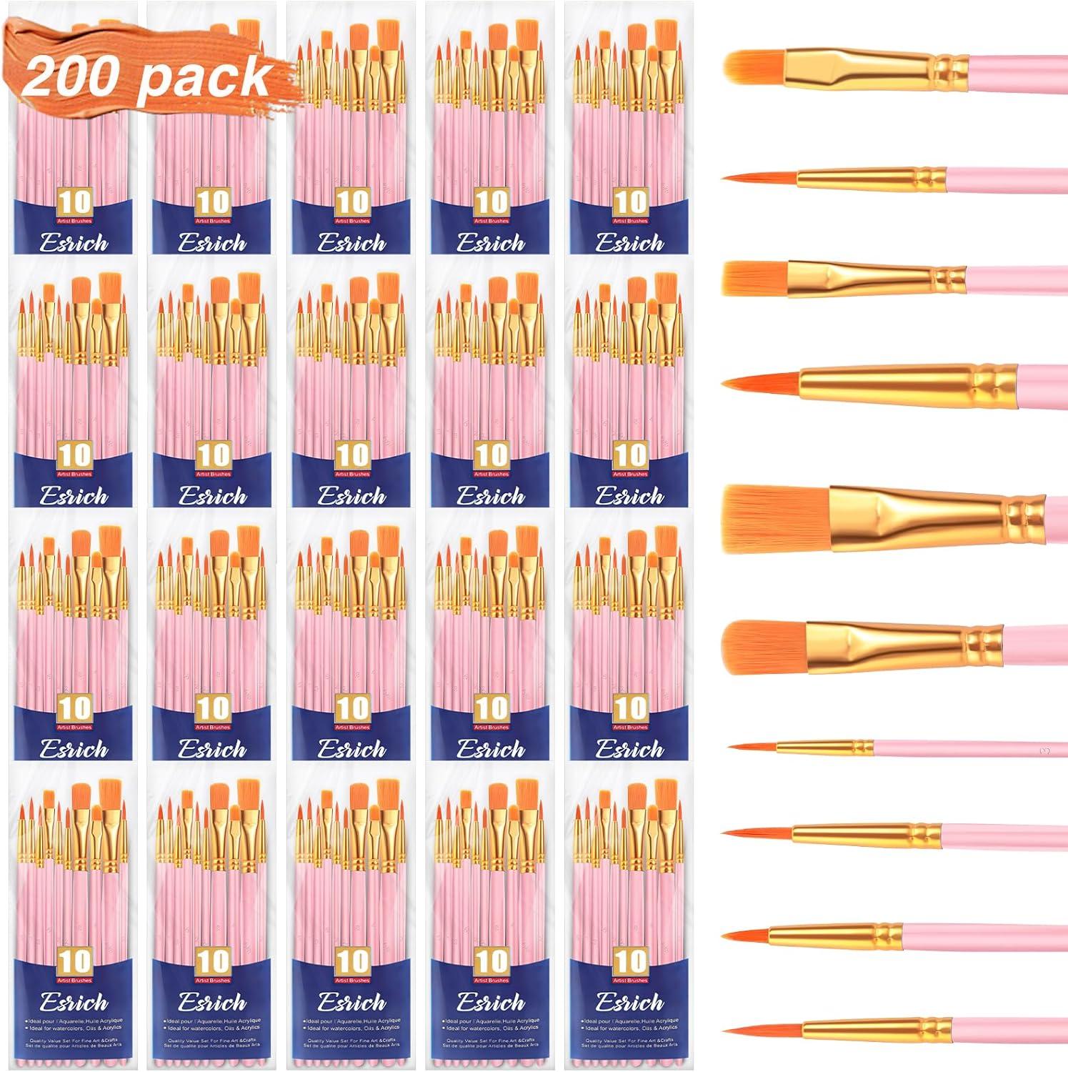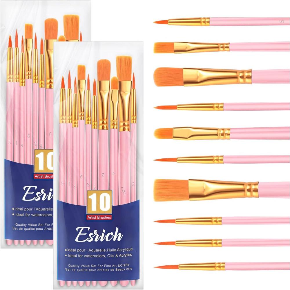 ESRICH Acrylic Paint Brushes Set,8Packs /80 Pcs Nylon Paintbrushes Head, Suitable for Acrylic Oil Watercolor Rock Body Face Nail Art Perfect Suit of Art Painting, Best Gift for Kids Adult Drawing(Pink)
