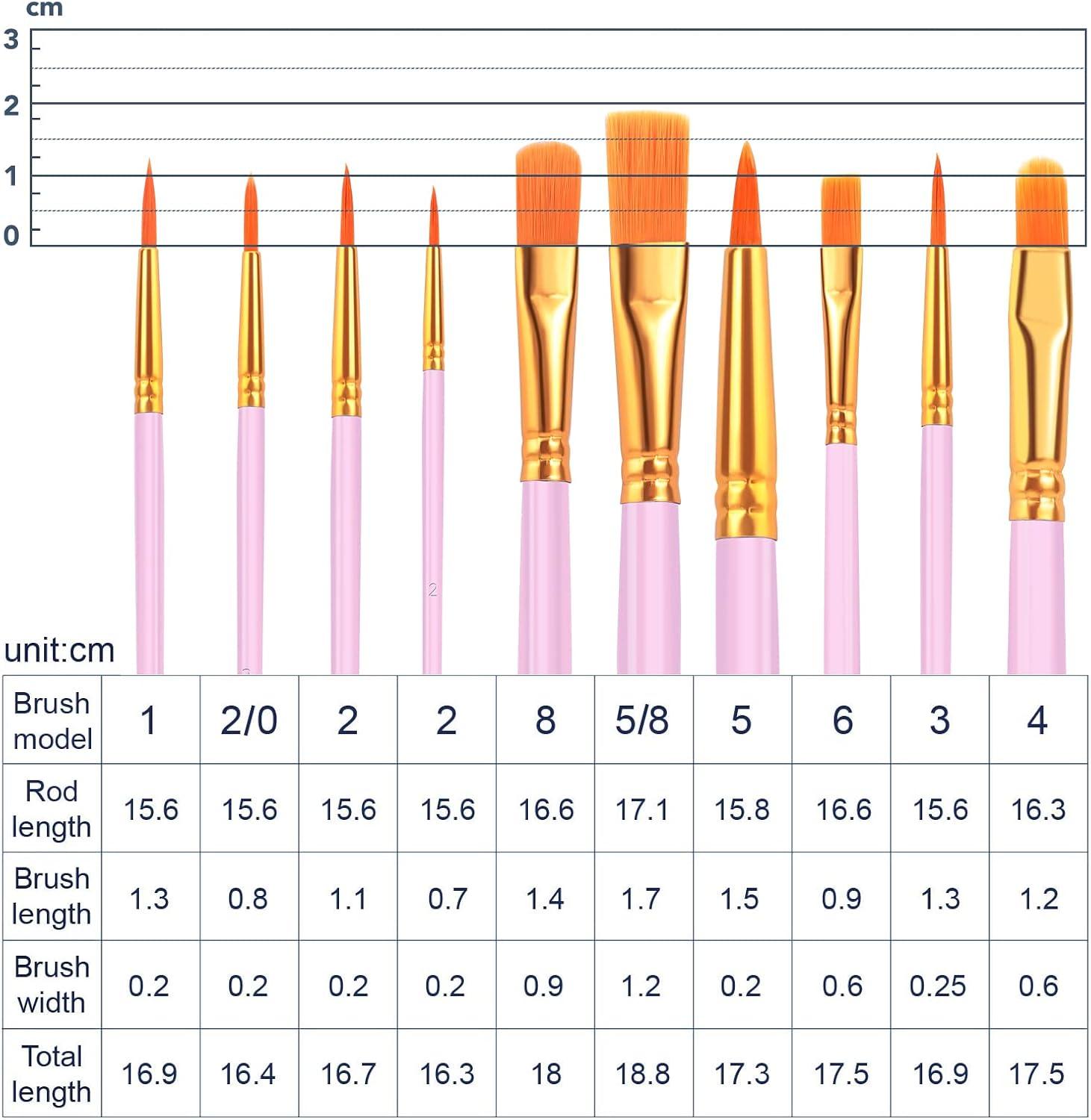 【All Sizes of Paint Brushes】: The 10 sizes of multi-functional brushes have various shapes, making the mixing color easier, which is very suitable for artists, students, teenagers, children and painters at all levels. Wonderful gift ideas for friends and family who like painting!