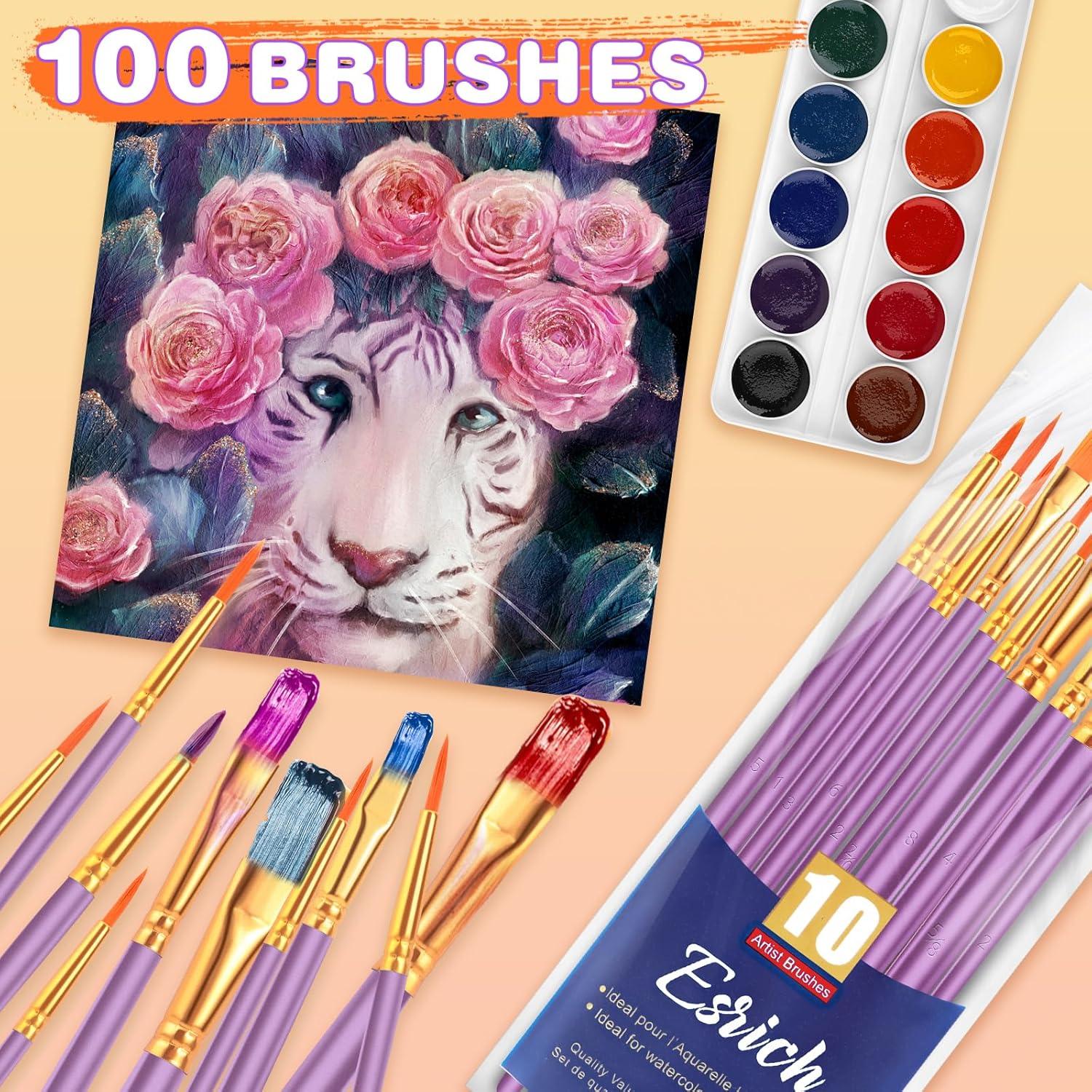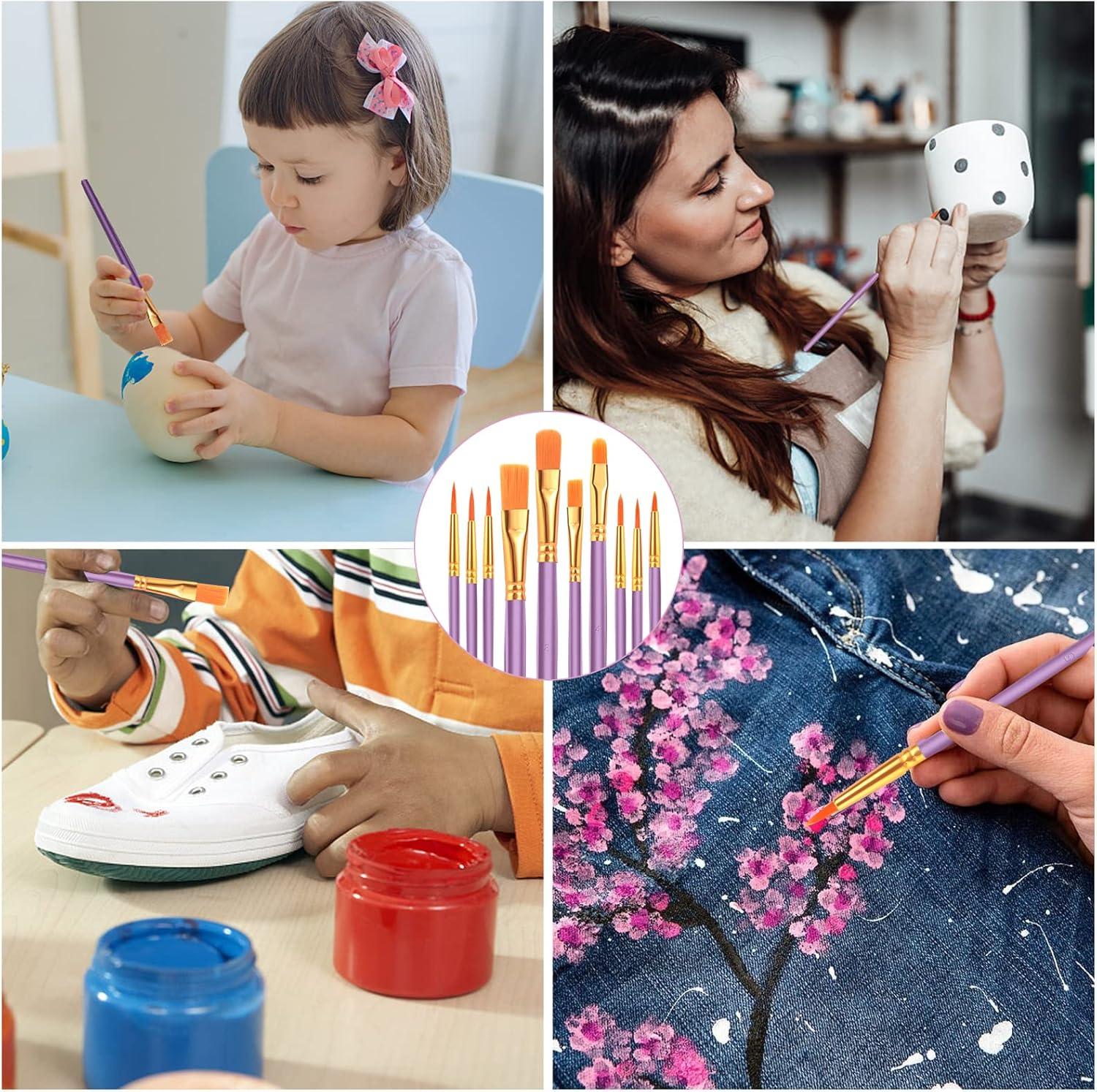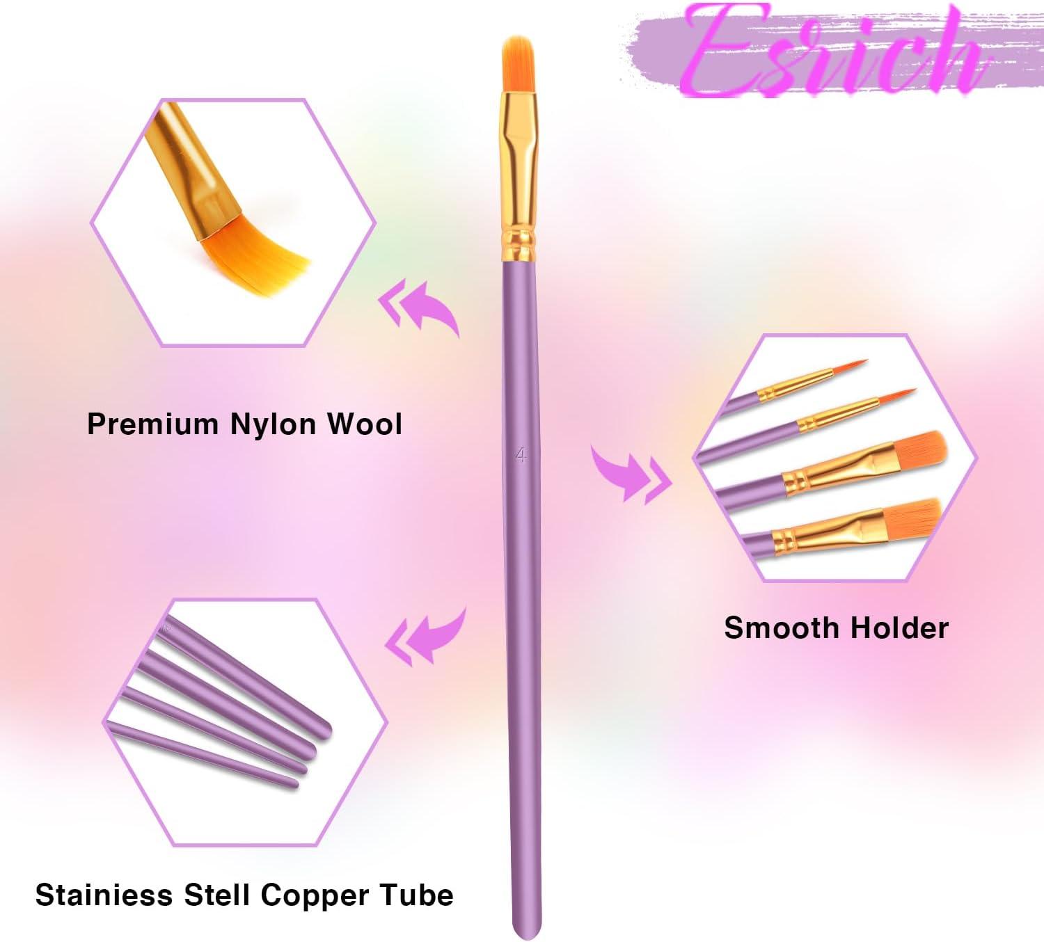 ESRICH Acrylic Paint Brushes Set,8Packs /80 Pcs Nylon Paintbrushes Head, Suitable for Acrylic Oil Watercolor Rock Body Face Nail Art Perfect Suit of Art Painting, Best Gift for Kids Adult Drawing(Purple)