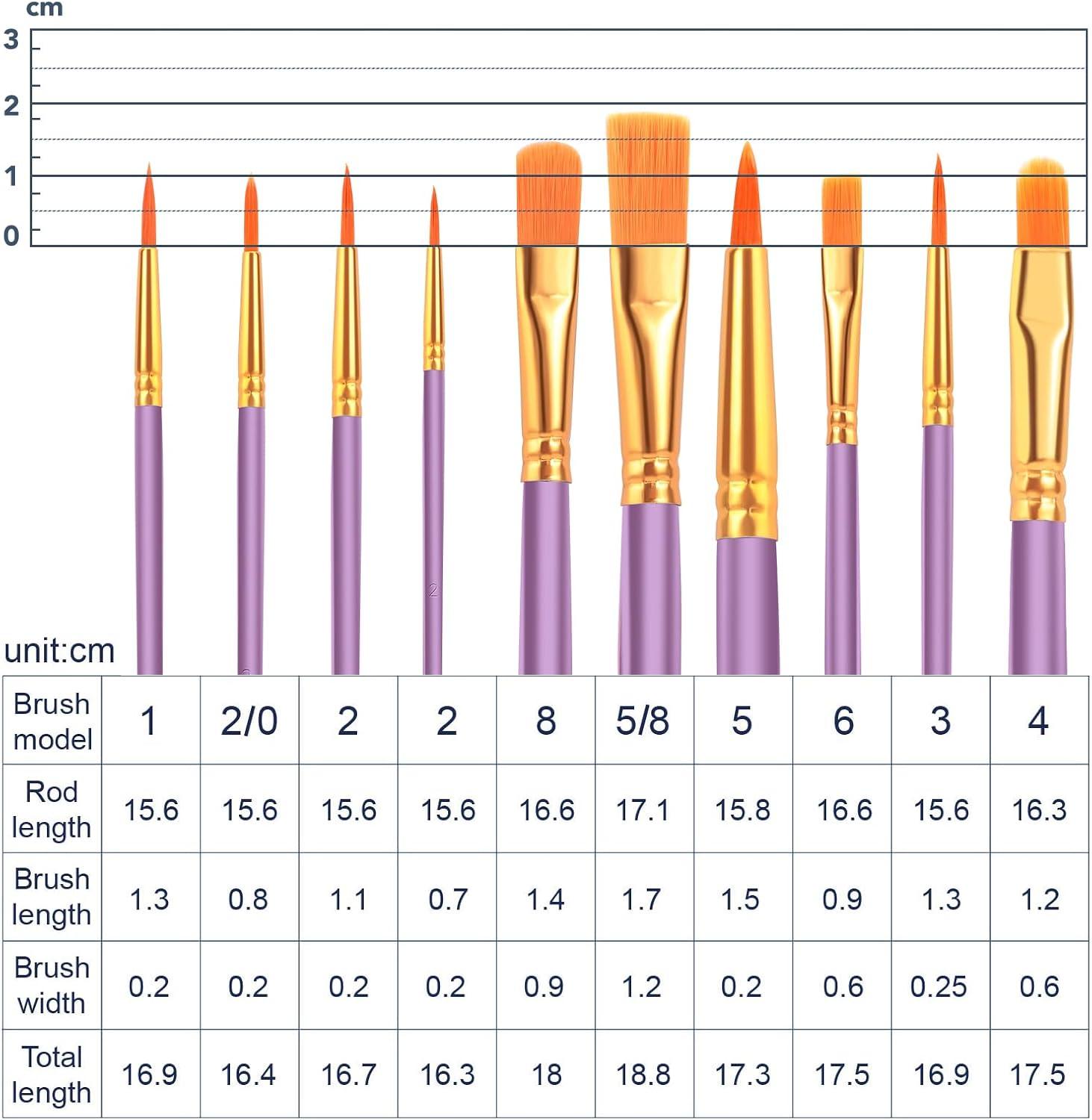 【All Sizes of Paint Brushes】: The 10 sizes of multi-functional brushes have various shapes, making the mixing color easier, which is very suitable for artists, students, teenagers, children and painters at all levels. Wonderful gift ideas for friends and family who like painting!