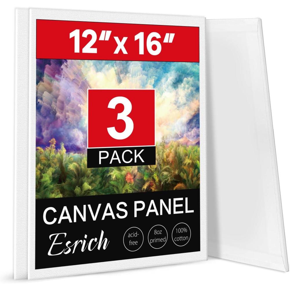 ESRICH Canvas Boards for Painting, 5 Pack Canvases for Painting 8x10 Cotton Primed Acid Free Blank Canvas Panels for Oil Paint, Watercolor, Acrylic Paint, Gouache and Tempera.(12*16in 3pack)