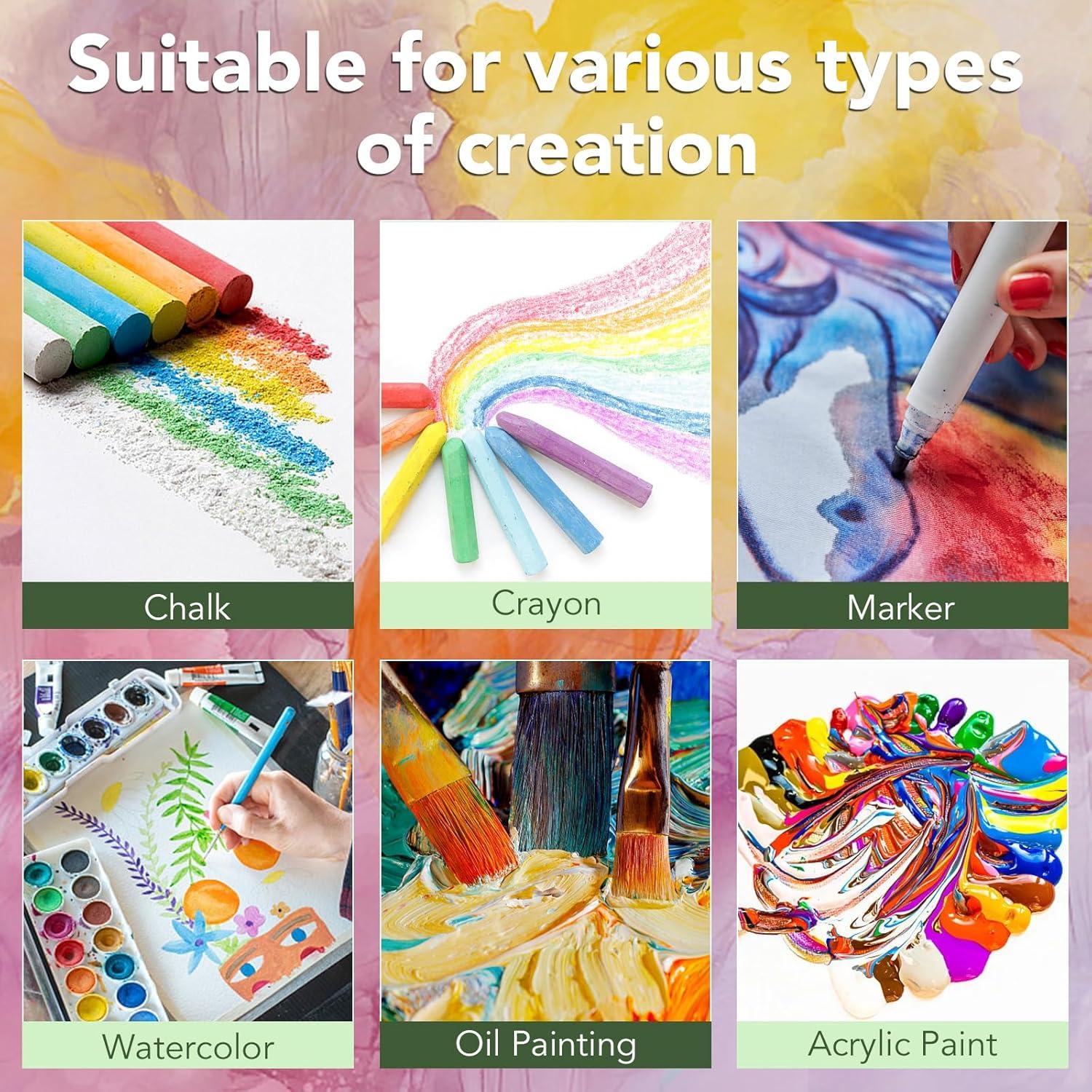 【Widely Used】Watercolor canvases for painting suitable for oil painting,watercolors,acrylic paintings,tempera paintings,pouring,Gouache and Tempera,etc.. Canvas bulk are also suitable for various occasions such as teaching, gatherings, home decorations, birthday decorations, etc.