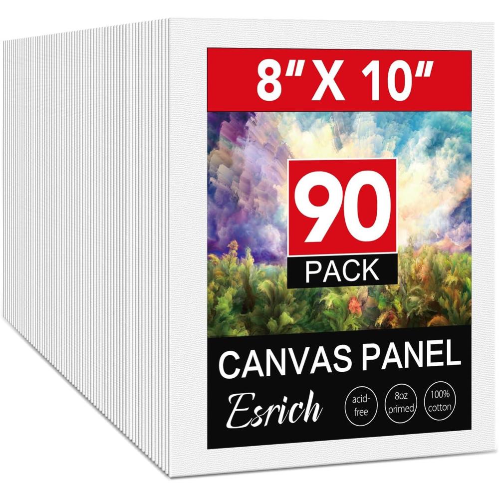 ESRICH Canvas Boards for Painting, 5 Pack Canvases for Painting 8×10 Cotton Primed Acid Free Blank Canvas Panels for Oil Paint, Watercolor, Acrylic Paint, Gouache and Tempera.(8*10in 90pack)