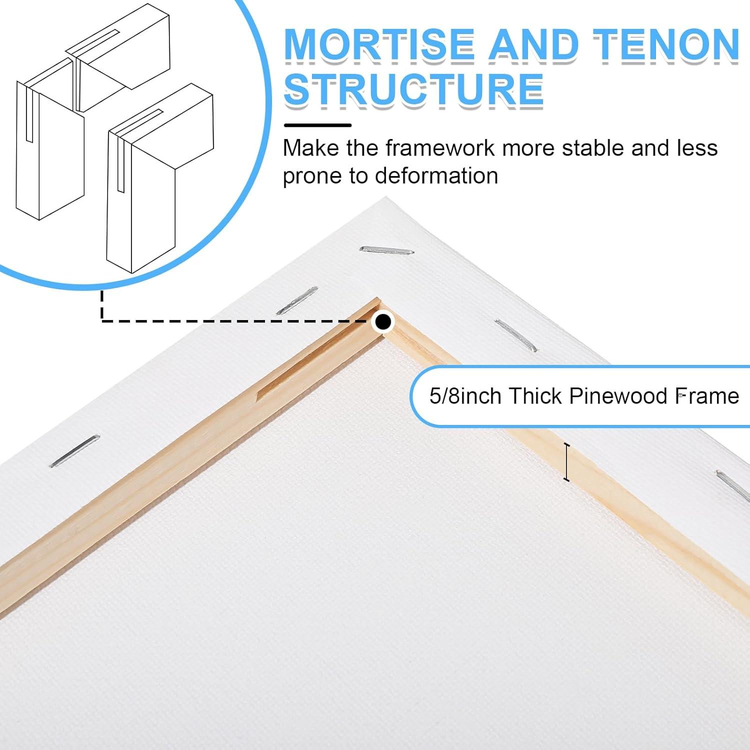 Wood Frame:The canvas is nailed firmly to the pinewood frame,5/8 inch thick frame structure. It's sturdy and doesn't deform easily. The high quality will enhance your painting experience.
