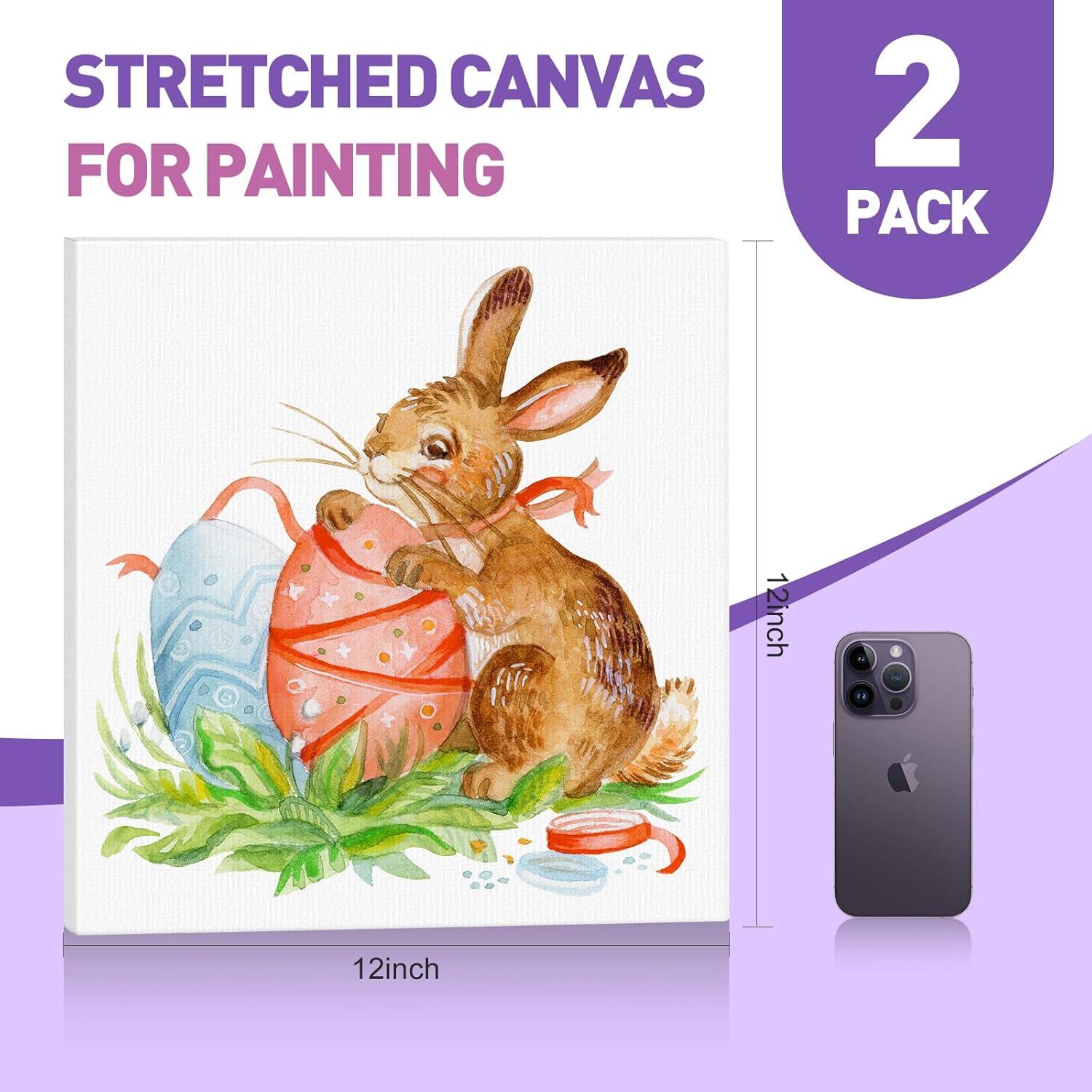 ESRICH Stretched Canvas for Painting, 5 Pack 8x10 Canvas Value Pack, Primed Acid-Free Cotton Blank Canvas, Paint Canvases for Oil & Acrylic Paint.(12x12)