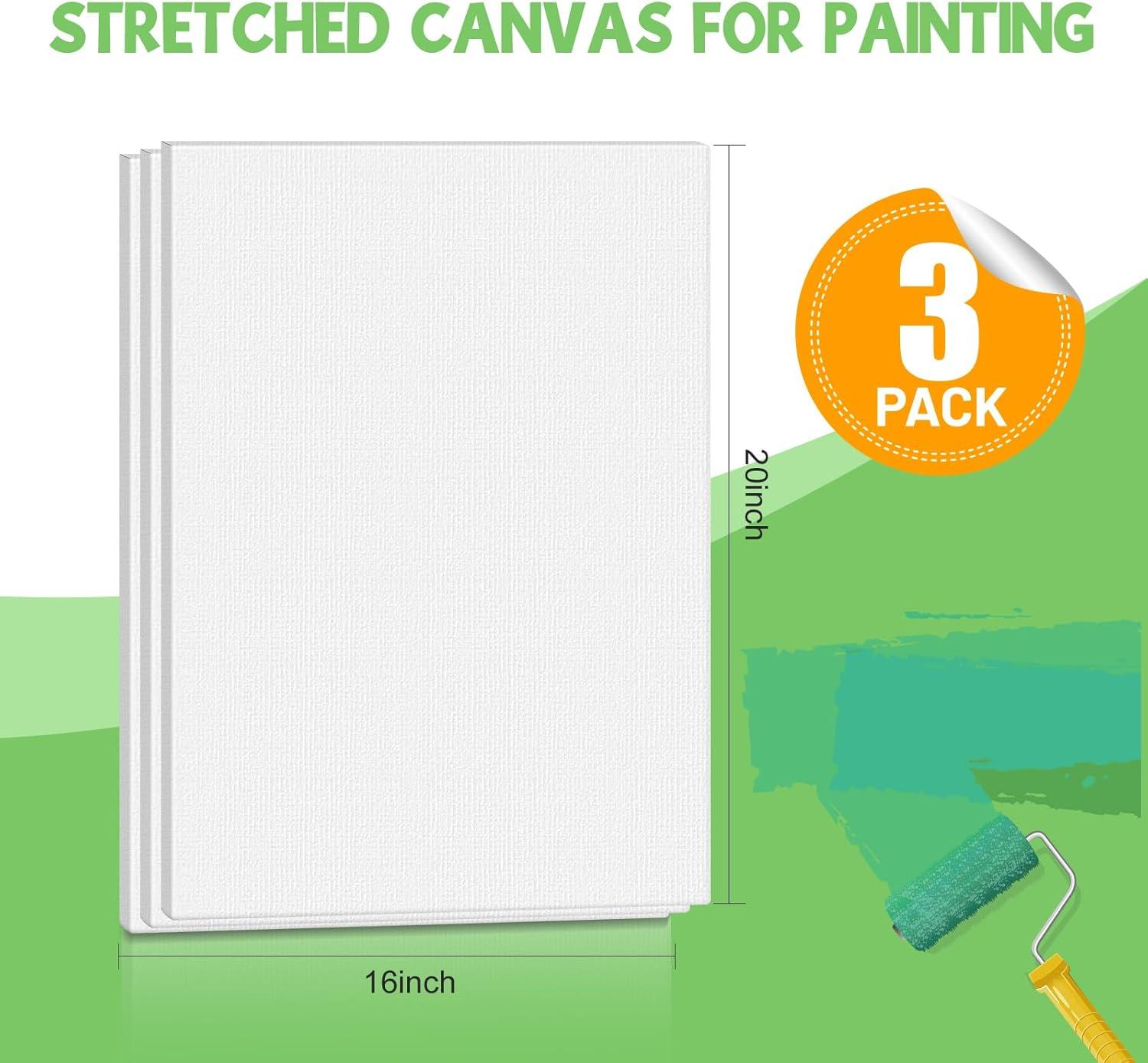 ESRICH Stretched Canvas for Painting 5×7, 60 Pack Small Canvases for Painting 5/8″ Profile Primed Acid-Free Blank Painting Canvas for Kids & Artists for Decorations, Painting Parties.(3Pack-16×20 Canvas)